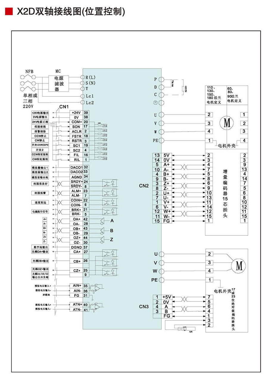 ●适配反馈单元:增量式编码器,省线式编码器,17位/23位绝对值编码器;