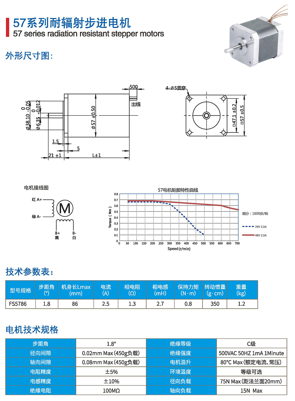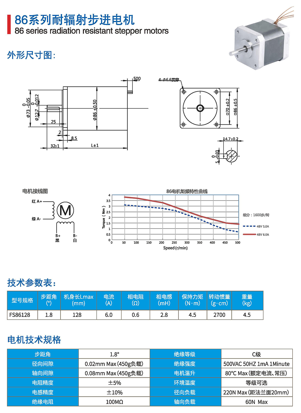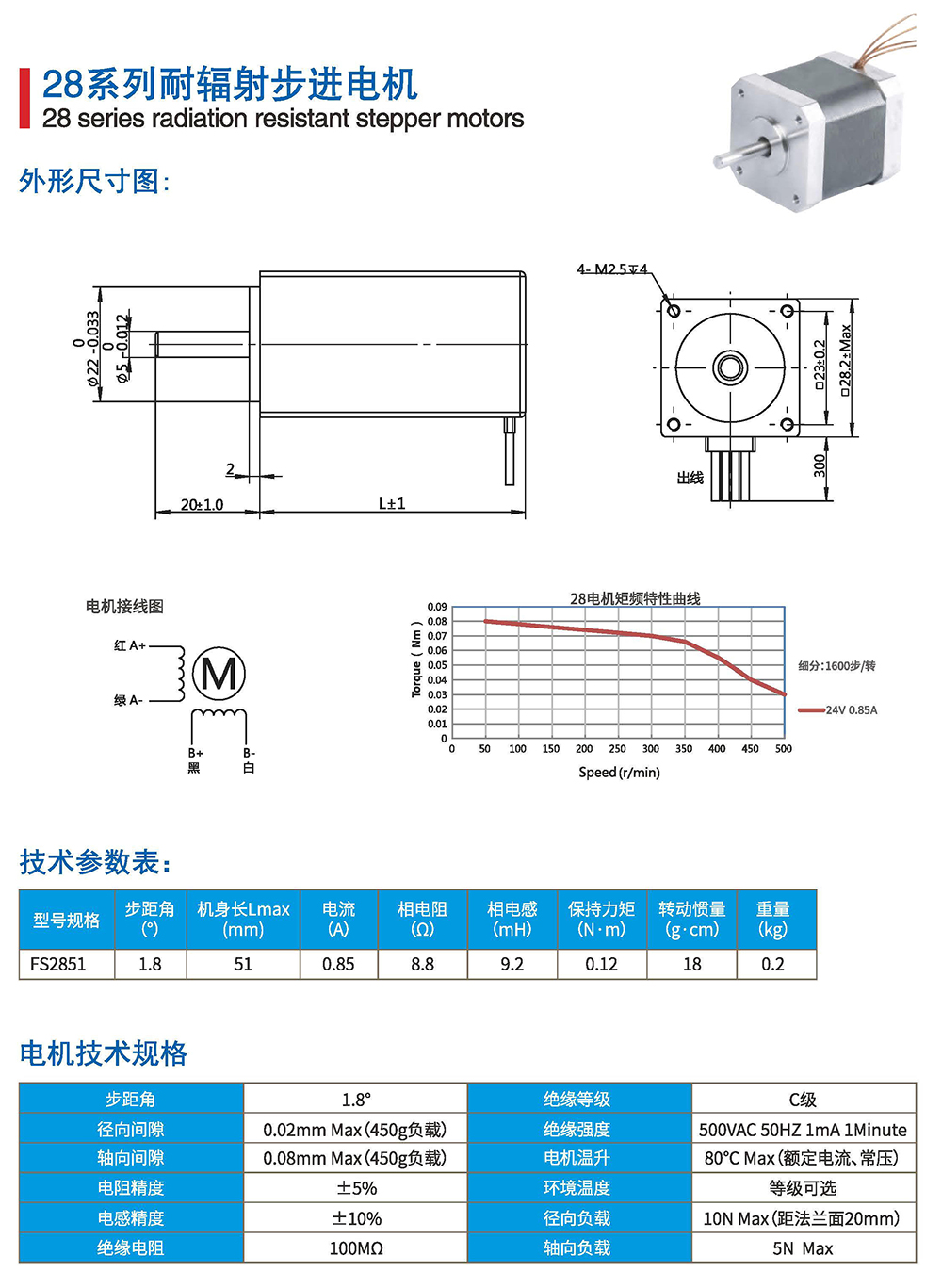 真空步进电机采用全新的设计,选用合适的材料,通过新的生产工艺完成对特殊电机的制造、检验。温度最低达-40°C~150°C ,真空度优于1.0X10-7Pa.标准设计28、35. 42. 57. 86框号两相四线制混合式步进电机,还可依据需要订制其他规格马达,或定制耐辐射、抗霉菌、耐冲击、出轴形式等特殊要求。