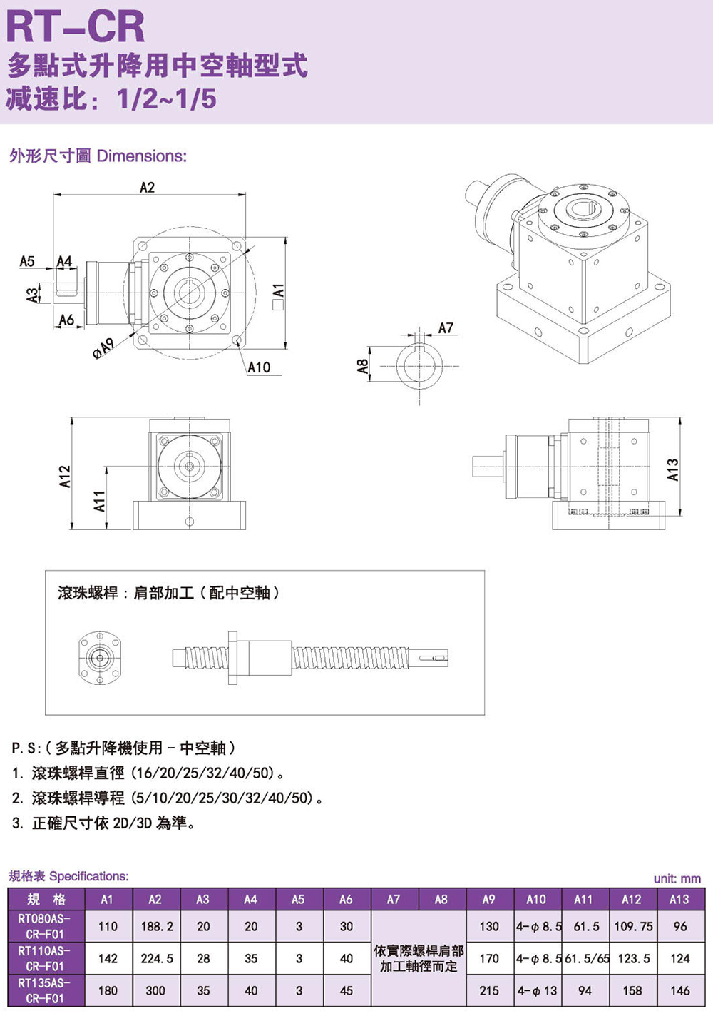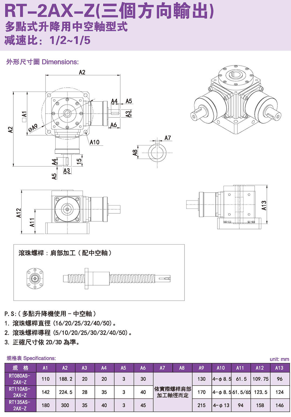 多样化:输出轴种类多样化,有单出力轴型、双出力轴型、中空轴型、中空法兰型、中空轴锥形紧迫性、螺杆直线型、螺牙直线型。